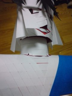 全身赤の画用紙の上から白い帯状の紙を貼ってます。